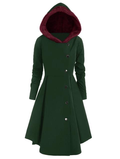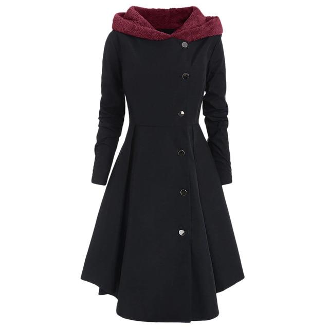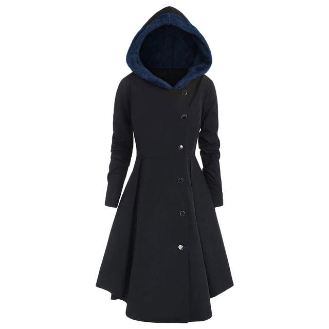 Model Number: ROSEGAL Plus Size Contrast Asymmetric Hooded Skirted Coat